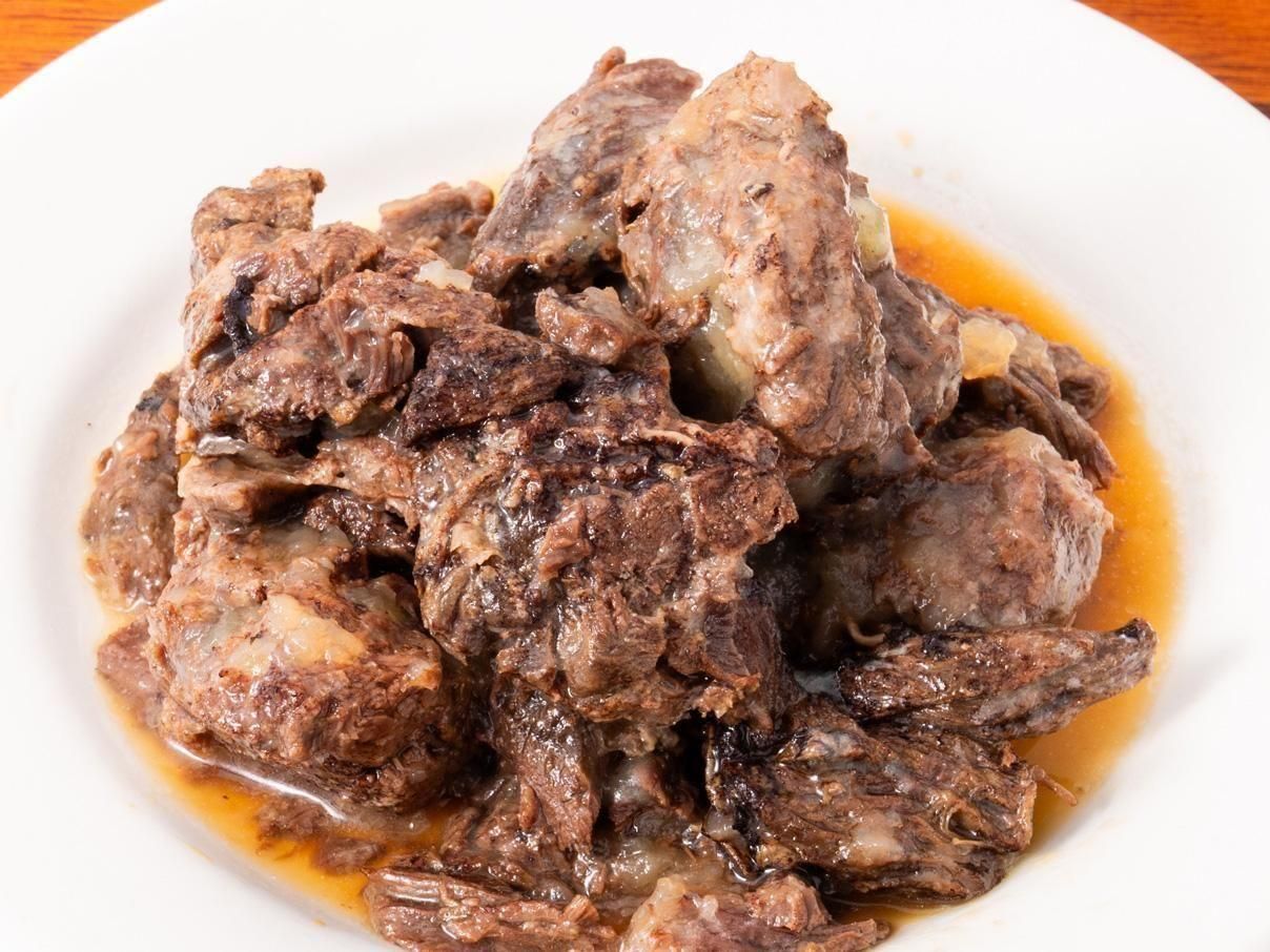 赤身スジをじっくり丁寧に煮込み、やわらかく仕上げた「馬スジポン」。